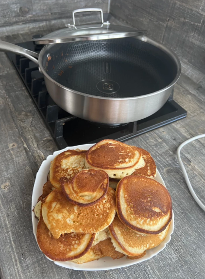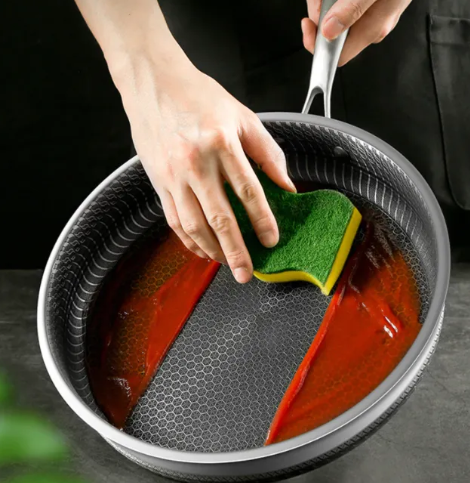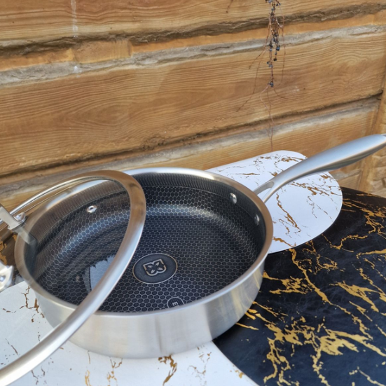 Гарна сковорода. Нічого не пристає. Легко миті. Досить глибока для приготування для сім'ї з чотирьох людей.